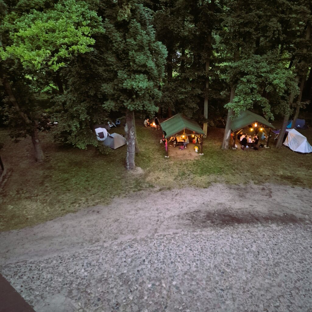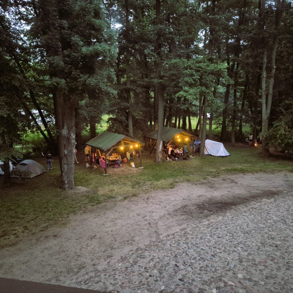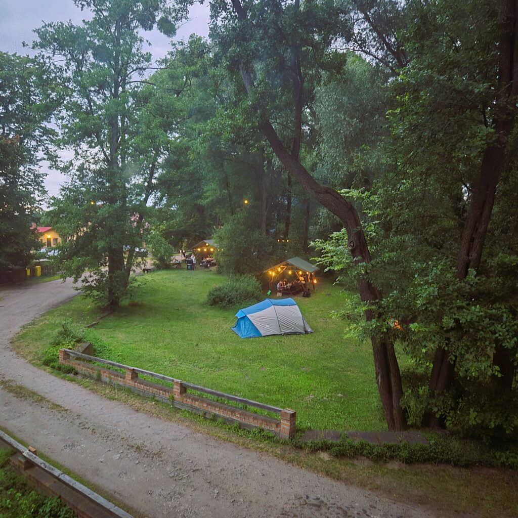 Nie posiadamy infrastruktury do obsługi kamperów i przyczep, pole namiotowe jest przeznaczone dla namiotów, nie parkujemy aut przy namiotach.
