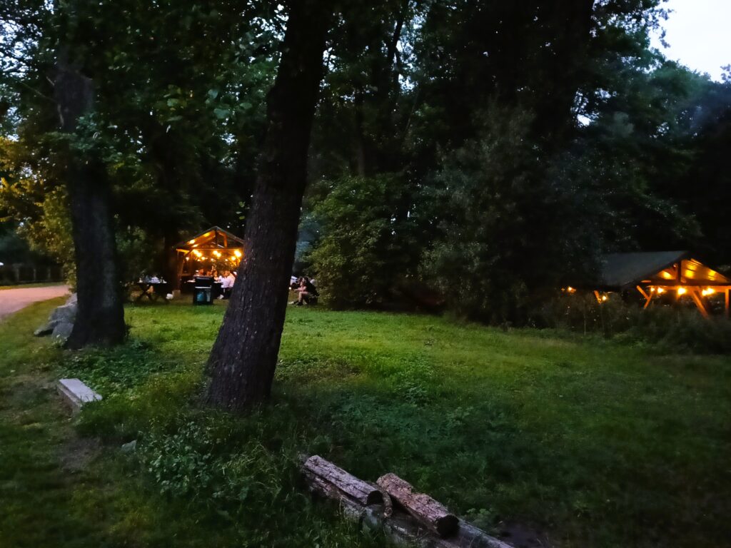 Po spływie można urządzić ognisko, grilla lub biesiadę w specjalnie do tego przygotowanym miejscu. W urokliwym zakątku nad rzeką spędzisz miłe chwile w gronie przyjaciół. Możemy przygotować dla was obiad tradycyjny lub lekki (zupa np.: żur na zakwasie i chleb ze smalcem), wszystko wedle waszych życzeń. Jeśli planujecie spędzić u nas więcej czasu, nieopodal ogniska możecie rozbić namioty. Do dyspozycji gości jest park nadrzeczny bezpośrednio przylegający do młyna. Pole namiotowe posiada węzeł sanitarny.